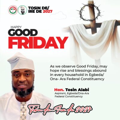 Good Friday: Egbeda/Ona-Ara House Of Reps Aspirant, Tosin Alabi Calls For Unity And Community Development