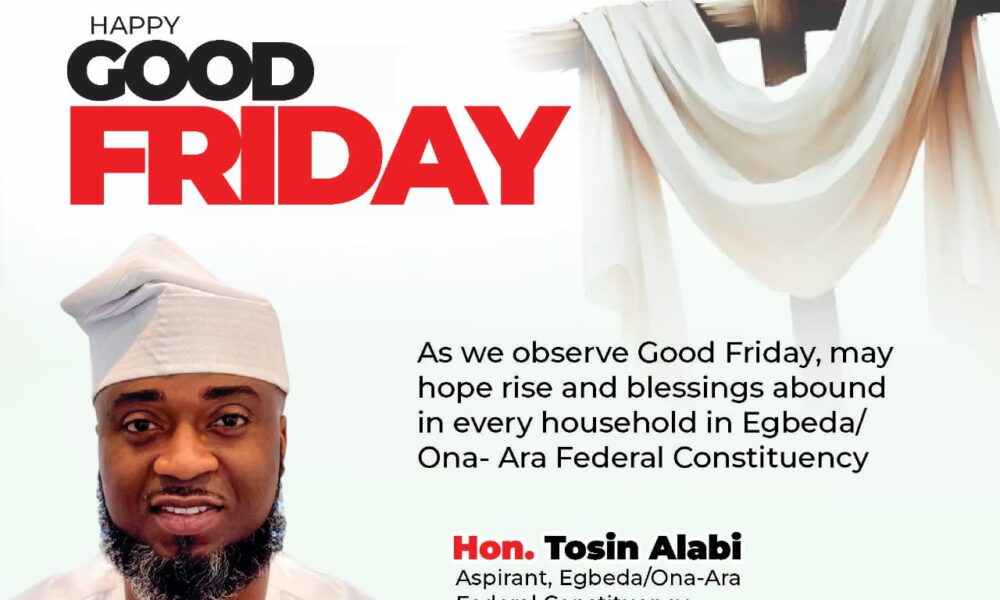 A leading PDP aspirant for the Egbeda/Ona-Ara Federal House of Representatives seat, Hon. Tosin Alabi, has extended his Good Friday...